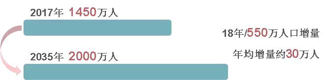 《廣州市城市總體規劃(2017-2035年)》已表明廣州2035年常住人口規??刂圃?span lang="EN-US">2000萬人左右,而2017年廣州常住人口為1450萬人,這樣看來到2035年還有550萬增長空間,平均每年可增加約30萬人口。