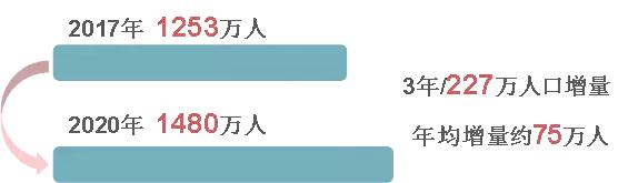 根據《深圳十三五規劃》,到2020年深圳常住人口預期目標1480萬人,2017年是1253萬人,可見未來三年深圳常住人口還有227萬的增長空間,年均可增長約75萬人。
