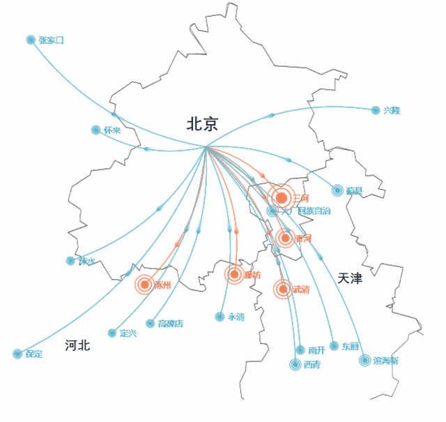 中指大數據顯示,北京及其周邊存在如下人流軌跡: