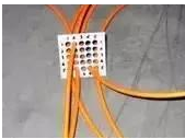理線板是一塊25孔方板(對應于24口配線架的合適尺寸5×5孔理線板,也可以選用4×6、8×8等規格),單面寫字,每孔可以穿1根水平雙絞線??梢韵胂螅寒旊p絞線穿入理線板后,彼此之間的相對位置就基本固定,根據其位置進行綁扎時不容易出現大的錯位現象,更不易出現線纜的交叉現象。