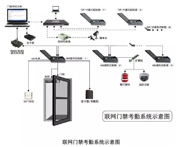 下圖是門禁考勤一體系統示意圖: