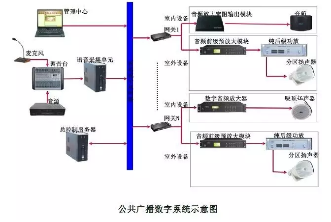 公共廣播系統簡稱PA系統(Public Address)廣泛用于車站、機場、賓館、商廈、醫院和各類大廈提供背景音樂和廣播節目,近幾年來公共廣播系統又兼作緊急廣播。它的主要用途是業務宣傳和時事政策廣播、播送背景音樂和廣播公共尋呼、火災事故和突發事故的緊急廣播。 現今的公共廣播集播放背景音樂,宣傳、尋呼廣播和火災事故的緊急廣播為一體。這是一種通用性很強的廣播系統。隨著我國經濟的快速發展,特別是公共基礎設施的大量興建,我國公共廣播呈現了快速發展的勢頭,發展空間較大。