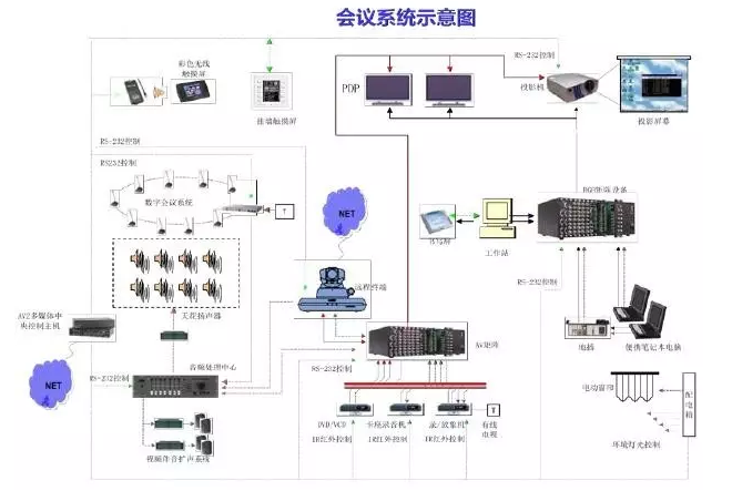 多功能廳會議系統以其功能多樣性(如:會議廳、視頻會議廳、報告廳、學術討論廳、培訓廳等)在近幾年得到迅速普及應用。并且從技術的角度上來看,對系統在設計和施工上有較大的技術復雜度,尤其對有較高技術要求的用戶,這就需要一種技術來綜合管理不同功能的AV設備使其能相互協調工作,這種技術就是中央控制技術,與會議系統的無縫結合就是多功能廳會議系統。