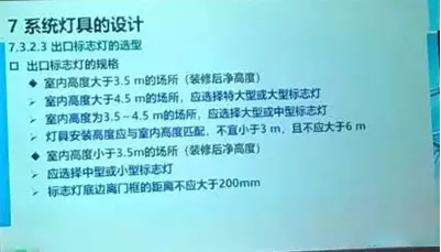 3、第3.2.1條第6款P6:要求不同的室內高度對應不同大小的燈具,而條文P133中又是提的設置高度,是否應理解為標志燈安裝高度?