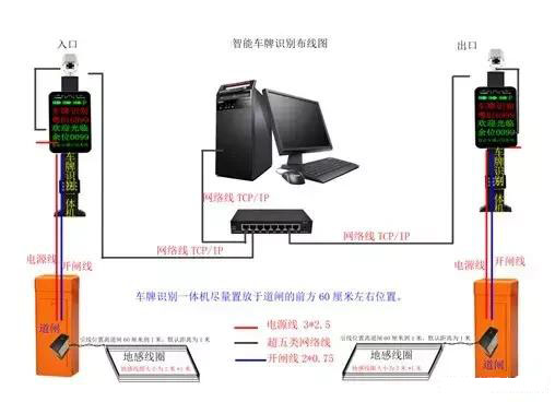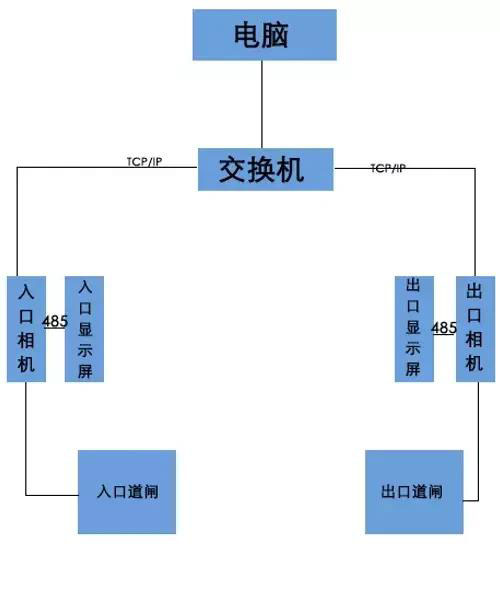 一套標準的車牌識別系統有服務器、管理電腦、出入口識別相機、顯示一體機、出入口道閘、軟件加密狗組成。可實現圖像對比、自動收費、固定車自動進出等功能。
