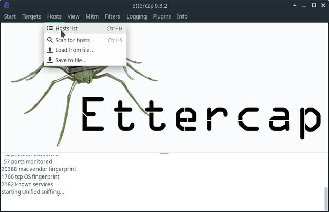 安裝之后就可以使用ettercap-gtk進行局域網的主機監控了,運行時需要root權限。