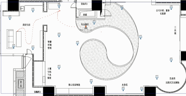 如下圖所示為某展廳人員定位效果圖,實時顯示訪客的位置,記錄參觀軌跡,實現互動講解等功能。