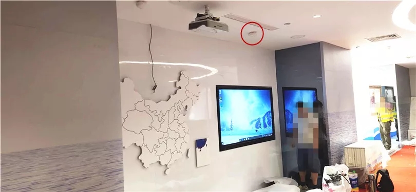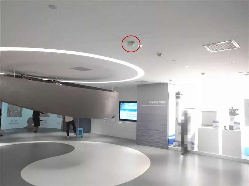 如下圖所示為現場的定位基站安裝圖,定位基站的安裝需要結合實際情況布設,不同的展廳不同的定位效果需要的基站數量不同,同樣面積的展廳需要的基站數量也不一樣。