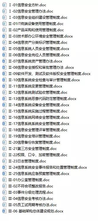 整個文檔的管理在等保中分為4個類,這里后期會為大家詳細講解每一個文檔,這里只做概述,下文會放出文檔詳單。