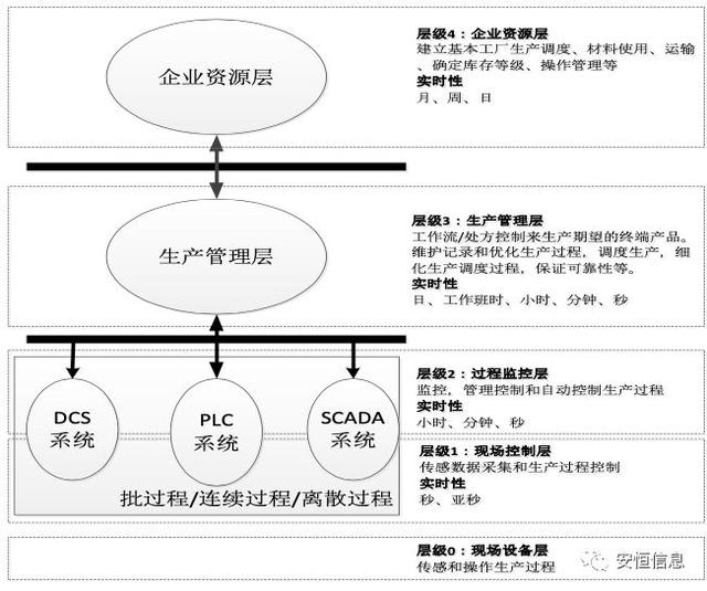 參考標準IEC 62264-1的層次結構模型劃分,同時將SCADA系統、DCS系統和PLC系統等模型的共性進行抽象,我們可以將工業控制系統進行如下分層: