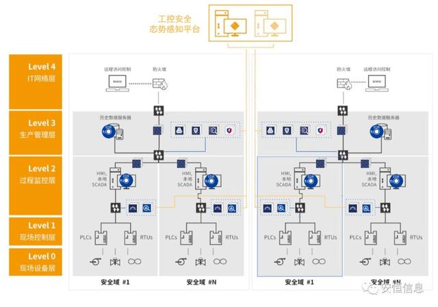 管理平臺:采用工業安全管控平臺,實現對生產網中部署的工控安全設備進行監控、配置和運維。