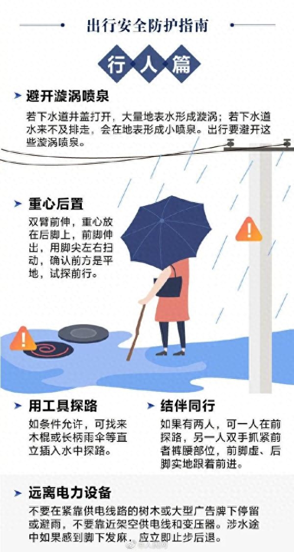 如在戶外遭遇雷雨,來不及離開高大物體時,應馬上找些干燥的絕緣物放在地上,并將雙腳合攏在上面,切勿將腳放在絕緣物以外的地面上,因為水能導電。雷電交加的時候千萬不能涉水,不能使用手機。打雷時,盡可能遠離電線桿。